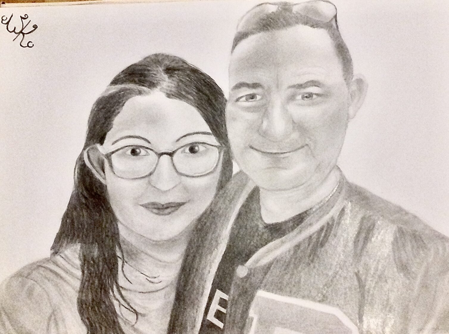 „Portret taty i córki”; tech.: ołówek -