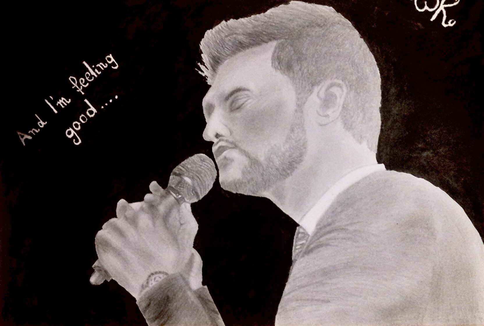 „Michael Bublé”; tech.: ołówek + tusz -