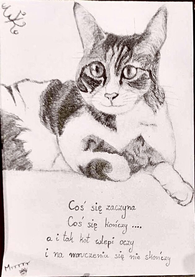 „Stęskniony kot”; tech.: ołówek