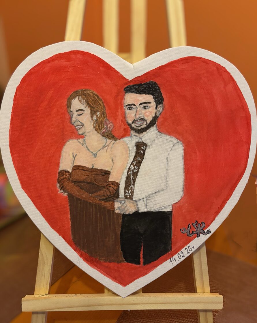 „Portret zakochanych”, tech.: ołówek + farby akrylowe