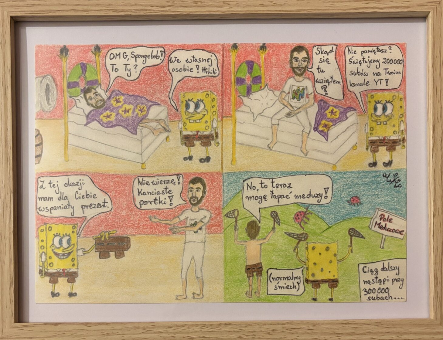 „Przygoda Pisarskiego na jubileusz kanału”; tech.: ołówek + kredki -