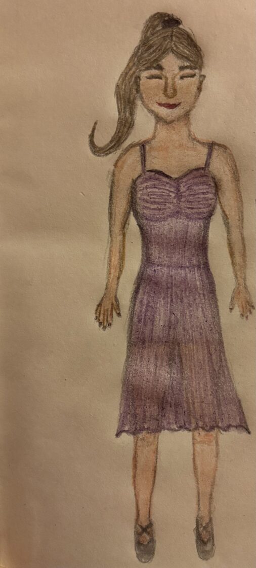 „Projekt tancerki”; tech.: ołówek + kredki -